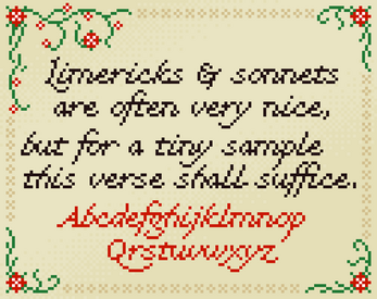 Niccolo is inspired by Italian humanist hands of the 1600s, the inspiration for what became today's italic typefaces. It has an x-height of 5 pixels, but the swoopy ascenders and descenders bring it to a total height of 16 pixels.