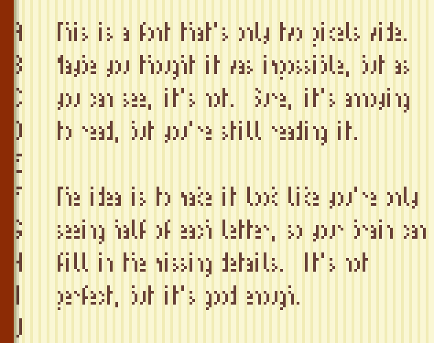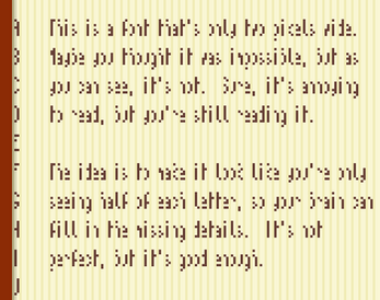 If a font only 2px high wasn't enough, here's a font that's only 2px wide!